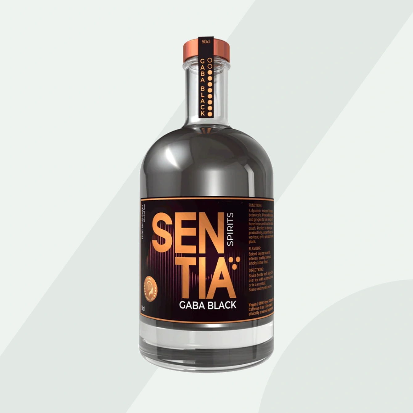Sentia GABA Black is a robust botanical spirit with warming pepper spice and a smoky, bitter edge.