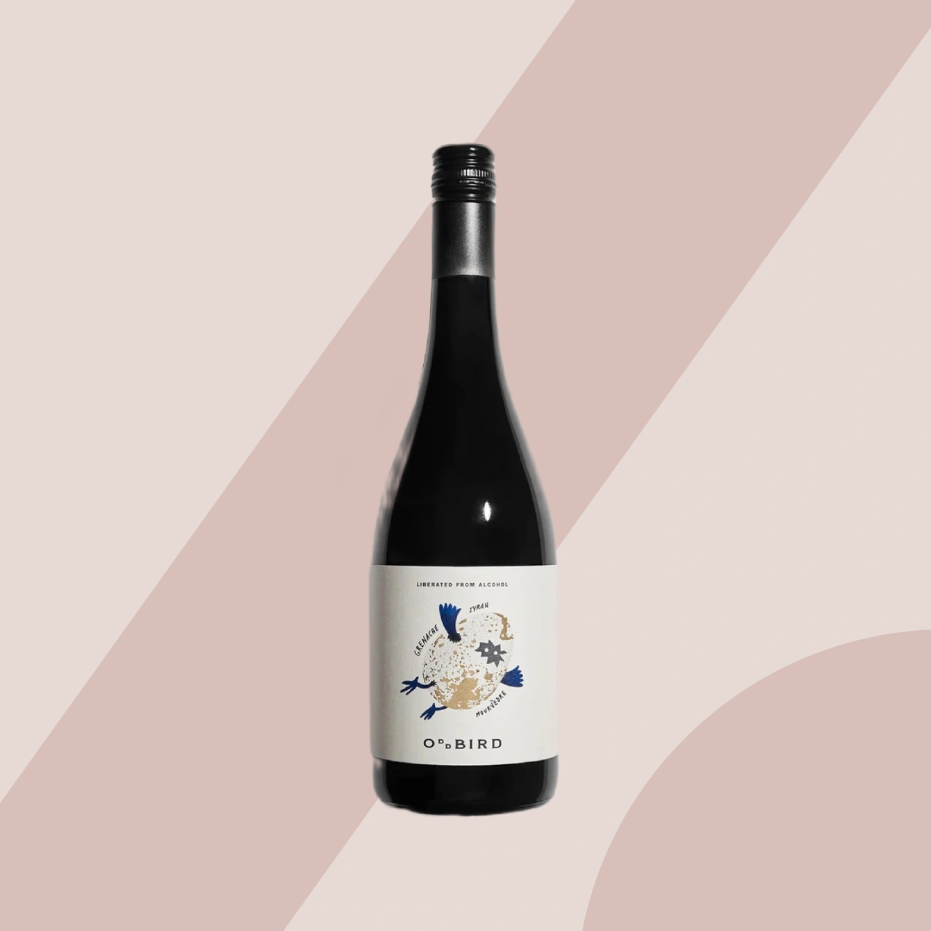 Oddbird GSM Red Blend is an alcohol-free red made in a rich, dinner-table style—layered, structured, and made for food
